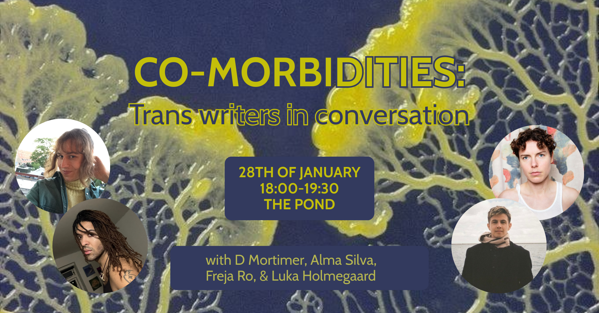 Gather with us as D Mortimer, Alma Silva, Freja Ro, and Luka Holmegaard read their writings from past and present. Opening the floor to discuss the co-morbidities of trans living today.
