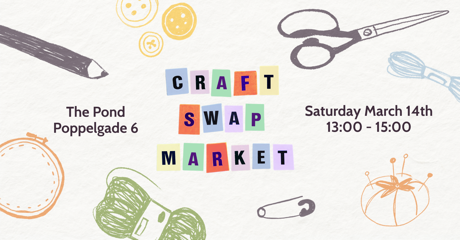 Saturday the 14th of March, from 13:00-15:00, in the backrooms of The Pond, we will have a Craft Swap Market. Bring any craft supplies you already have and are ready to give a new home.