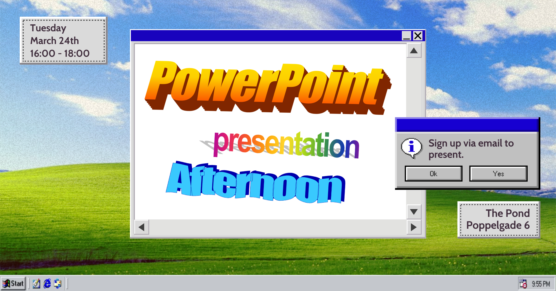 Then sign up for a presentation slot via email: